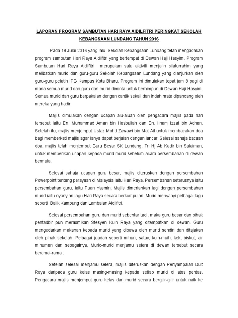 Laporan Majlis Sambutan Hari Raya Pdf