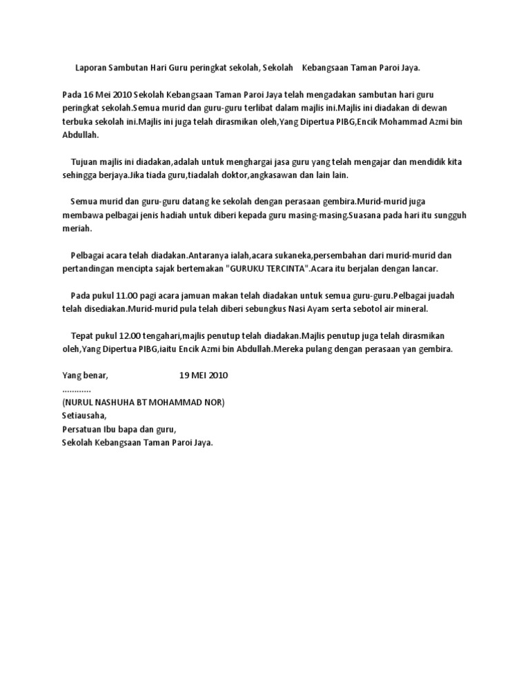Laporan Sambutan Hari Guru Peringkat Sekolah Pdf
